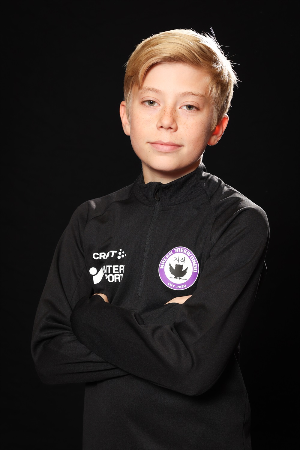 Olle har tränat taekwondo i 6 år och började under hösten 2024 hjälpa till som tränare i våra barngrupper. Under höstterminen 2025 gick han in som en av huvudtränarna för Vit grupp (7-9 år) och började samma termin även tävla i taekwondo där han i sin debut knep en guldmedalj!